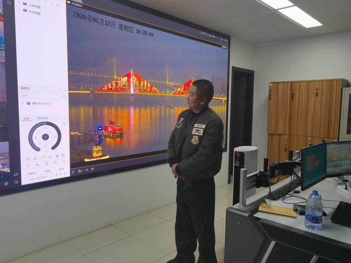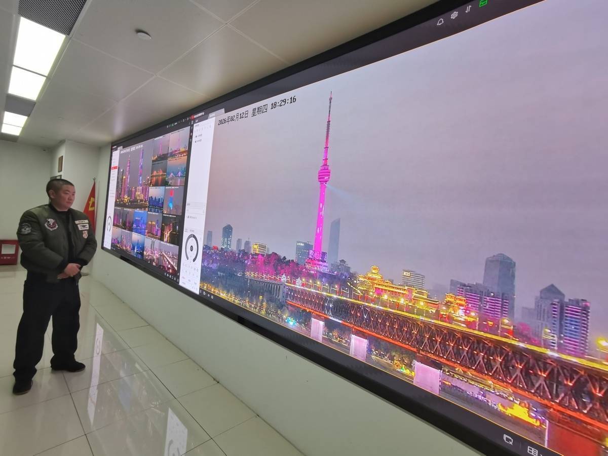 惊艳的灯光秀背后,是武汉城管人的默默守护。2月14日晚6时,武汉市城管执法委市容景观秩序处何倩妮科长与工程师胡蕓遵来到天悦外滩金融中心32楼的景观照明智能监控中心。他们专注的目光,落在了一面墙大的监控系统上,进行着视频巡查。