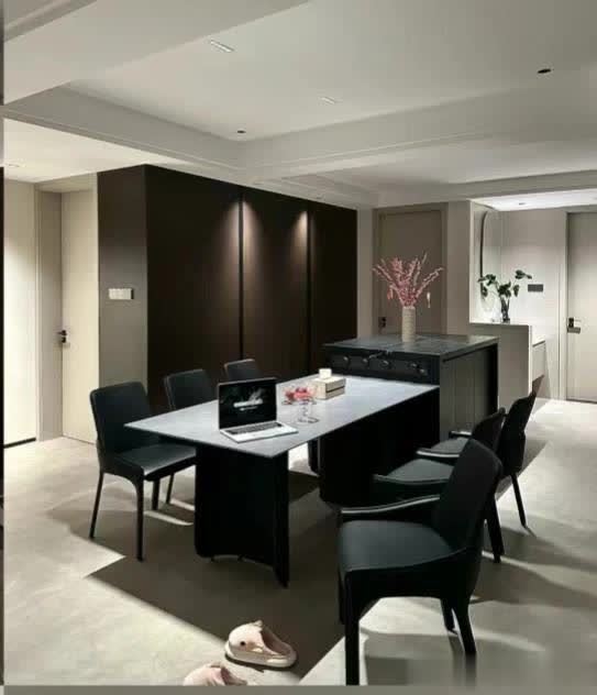 餐厅空间不算小!可采用岛台与餐桌搭配的方式,经典耐看,岛台下方也能做收纳区域!