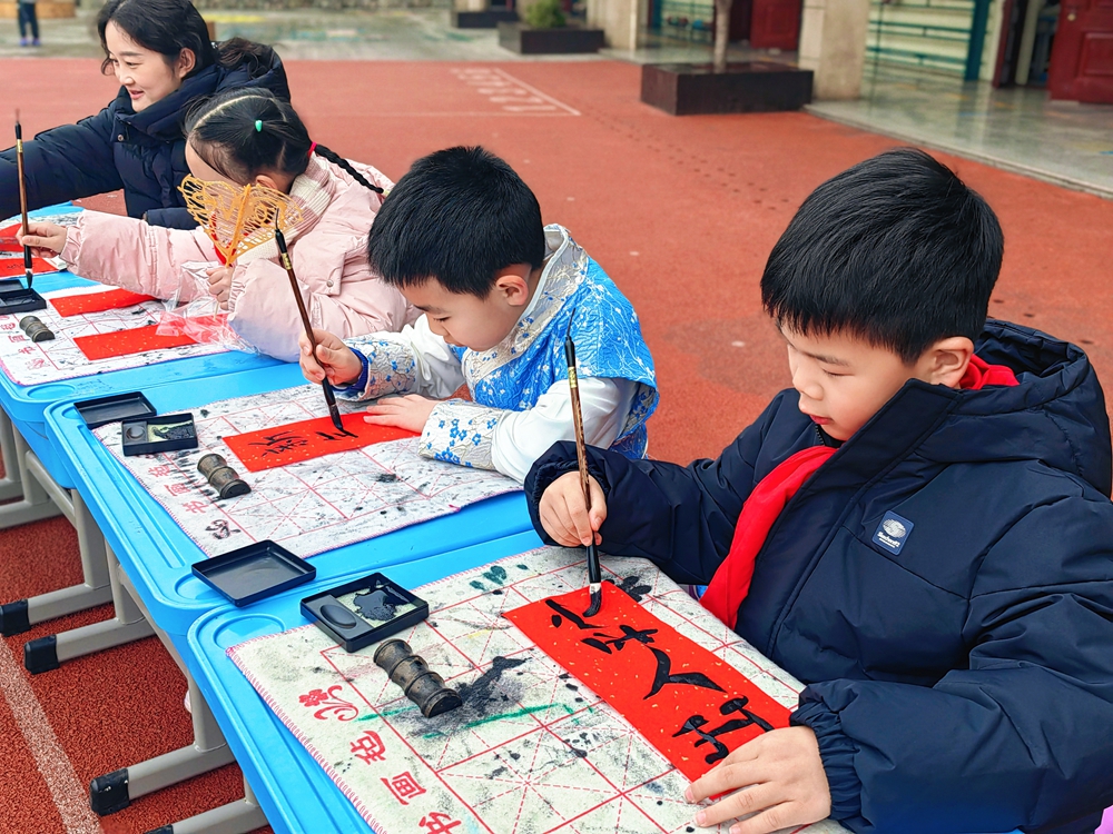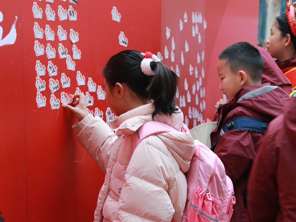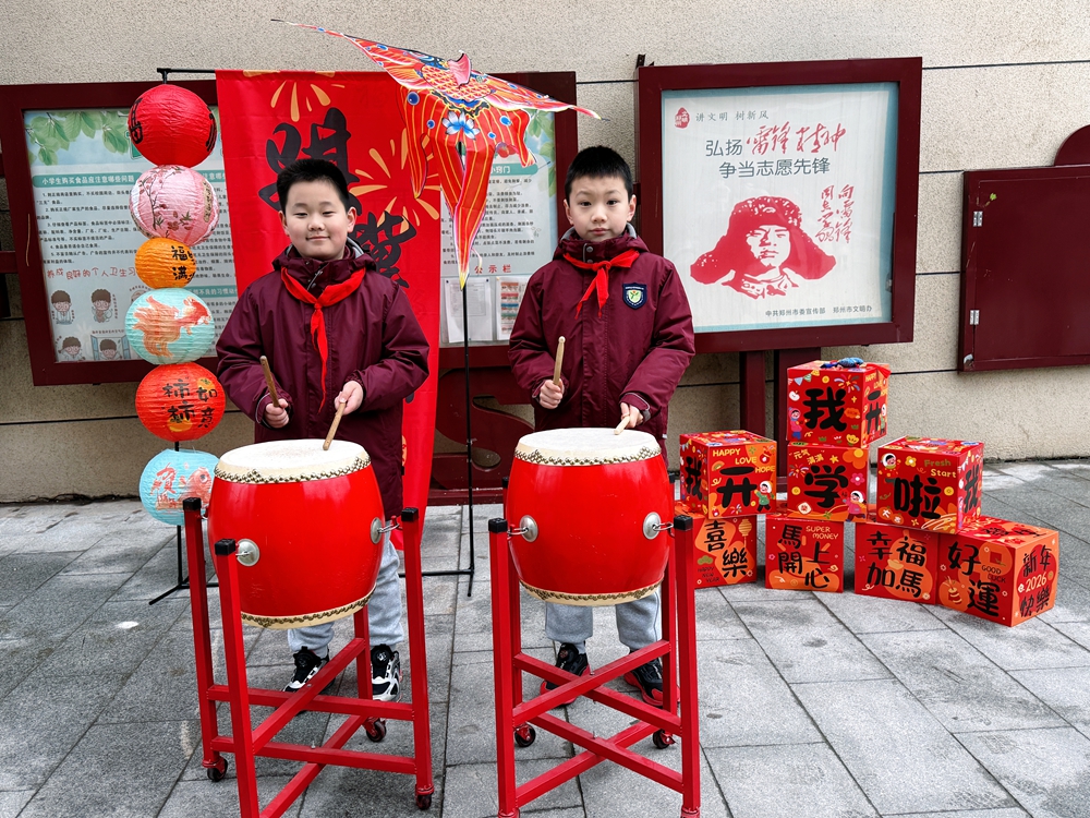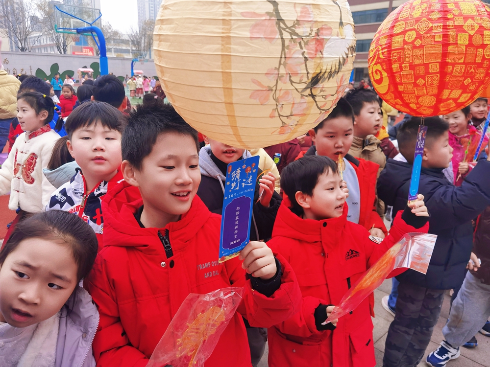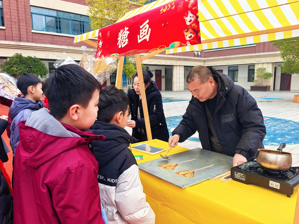 典礼之余,校园内更是打造了沉浸式传统文化体验空间,学校特与金水区文化馆携手,设置非遗观摩区,糖画、糖人、编结、面人等十余项非遗技艺精彩呈现,非遗传承人手把手展示传统匠心;文化体验区,剪纸、书法、脸谱彩绘让孩子们亲手感受国粹魅力;古韵游戏区,投壶、捶丸、推铁环等传统游戏趣味十足,欢声笑语不断;趣味灯谜区,学子们凝神思索、竞猜谜底,在解谜中收获知识与快乐。传统与趣味相融、观赏与体验结合,让优胜学子在沉浸式体验中触摸非遗温度、感受传统文化底蕴,让文化传承的种子在少年心中生根发芽。