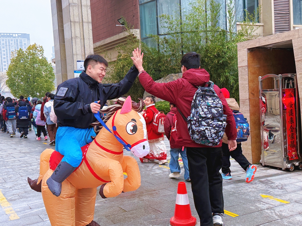 校园里迎新氛围浓郁,智能机器人灵动相迎,萌趣马玩偶暖心互动,铿锵的击鼓迎新声传递美好期许,孩子们认真写下心愿寄托新学期憧憬,温暖的拥抱更是将入校的欢喜与温情拉满,多样趣味的互动环节,让每一位优胜学子在温馨与美好中开启新学期的逐梦之旅。