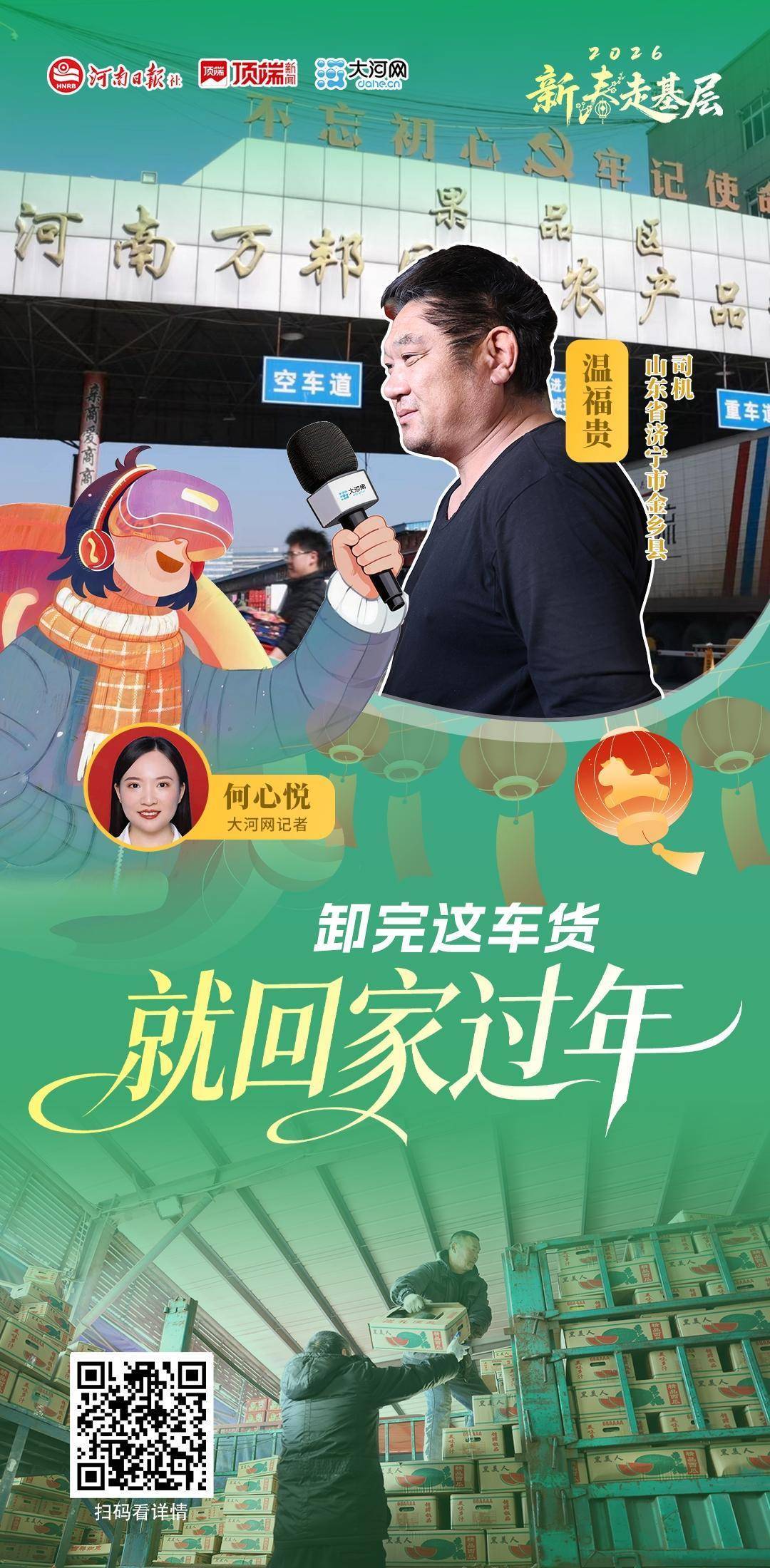 张建培张建培才干货运两年,在一群“老司机”里算是新人。但说起这一行,他倒是挺有感悟。“在路上什么人都会遇到,什么事都会经历。”他把一箱花菜递给商户。“也有难的时候,就像过年,看着别人往家赶,自己还得往外跑。还好今年能赶回去,卸完这车我就往周口开,离我们扶沟不远,两个多小时就到了。”张建培笑着说。“应季”被虚化他们让年味按时抵达无数个叫不上名字的货车司机,从黑吉辽来,从云贵川来,从天南海北来,拉着东北的冻货,拉着南方的蔬菜瓜果,拉着那些他们自己有时舍不得吃、有时又会买上一袋带给孩子的“好东西”到万邦“碰头”。河南万邦国际农产品物流城市场部经理宁亚兵说:“在万邦,‘应季’这个词被虚化了,不是因为季节不重要,是因为物流太发达了。”