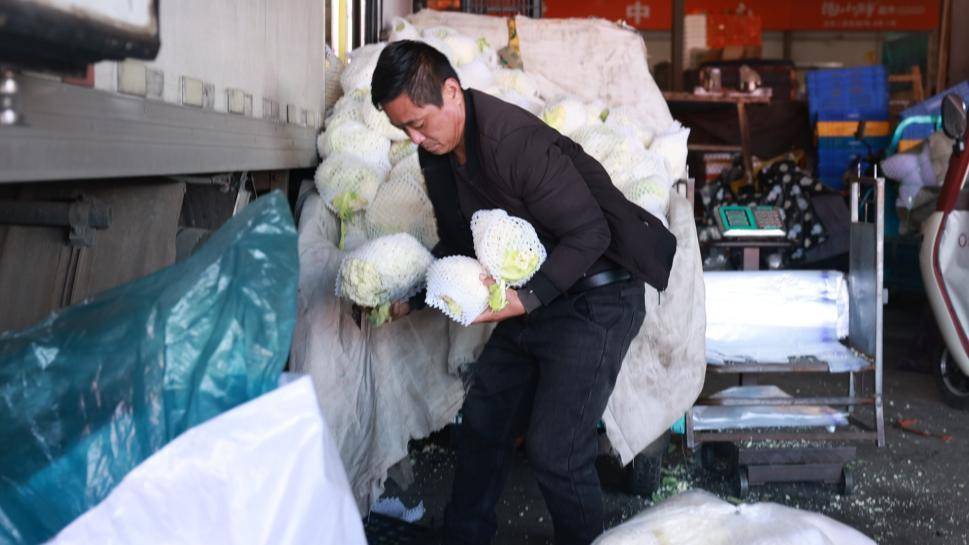 吴海军“搭把手的事,早卸完早回家”在蔬菜区的一个档口前,记者看到一个身姿矫健的身影正在车厢里往外卸货。他叫张建培,周口扶沟人,退役军人,也是名货车司机。“搭把手的事,这都不算啥。”他一边搬菜一边说,“早卸完早点回家过年嘛。”他搬的是一箱箱花菜,从云南曲靖来的。白色的花菜裹在网套里,码得整整齐齐。
