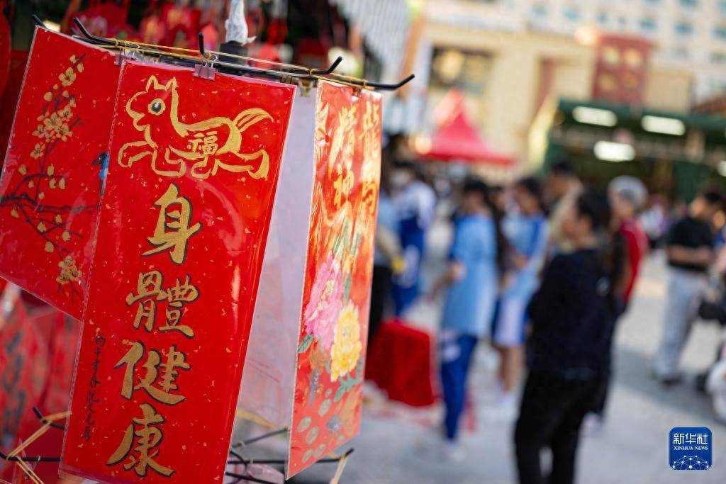 2月15日,人们在澳门塔石广场年宵市场购物、游玩。
