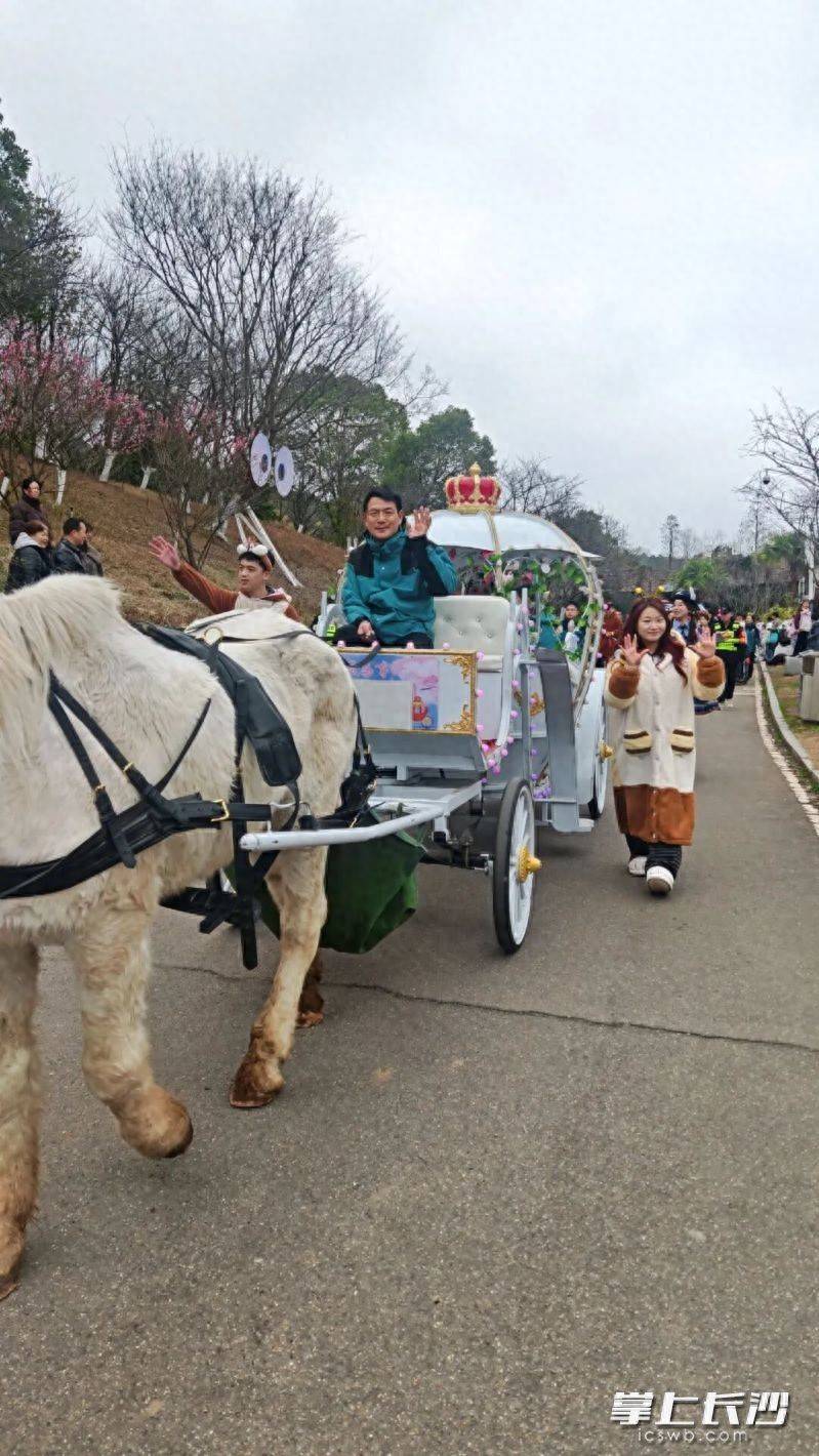 长沙晚报掌上长沙2月22日讯(全媒体记者 刘军)“马年坐马车,这种感觉真的太美妙了!”21日上午,在长沙生态动物园,一位刚参加动物巡游的游客高兴地对记者说。据长沙生态动物园工作人员介绍,今年农历马年,该园推出的“一马当先花车巡游”活动受到游客热捧,不少游客来到该园寻马接福,期盼新的一年好运马上到。