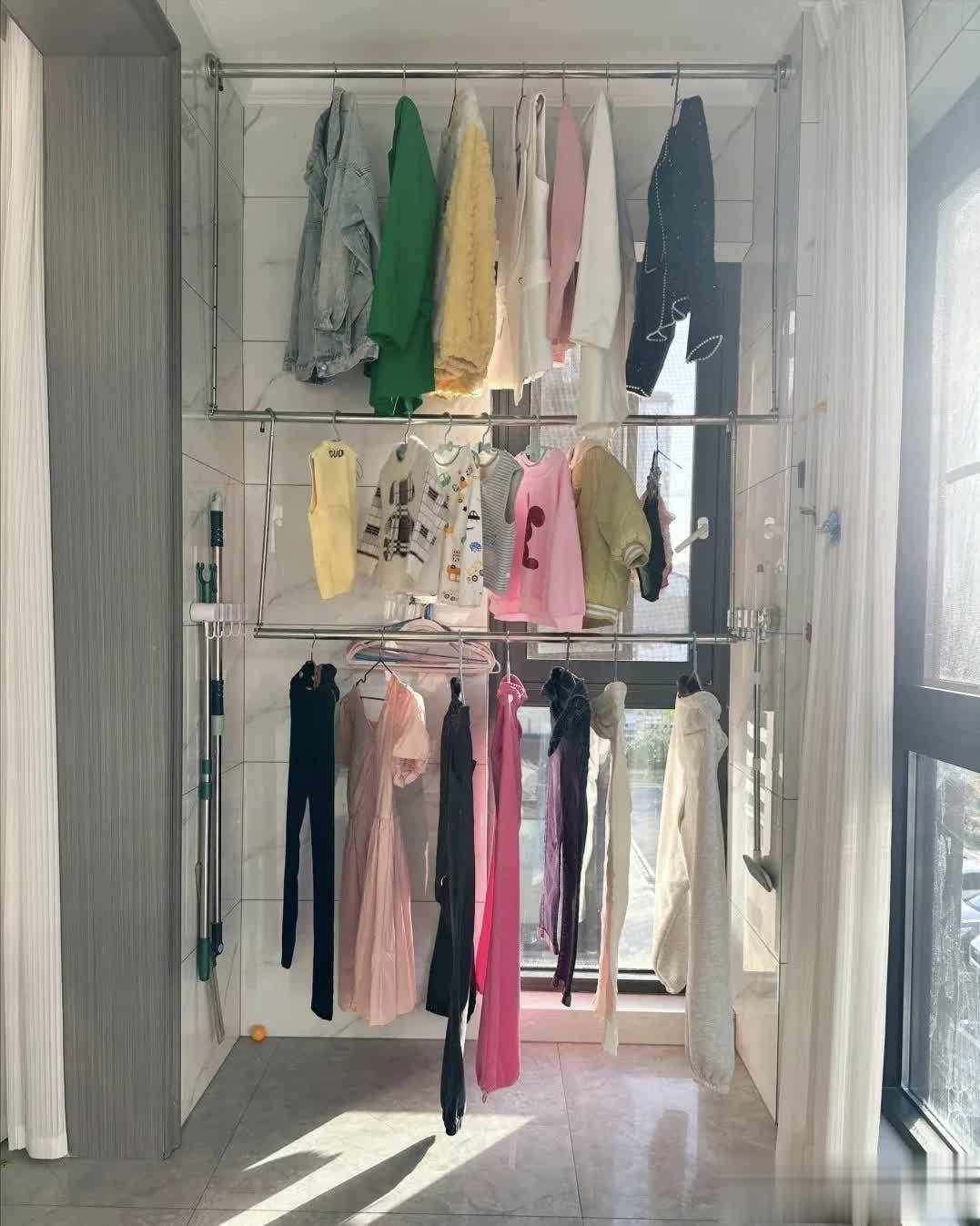 参观邻居家时,要么是带杀菌功能的电动晾衣架,要么是号称“隐形”的智能款,而媳妇坚持在阳台侧面装两根不锈钢挂衣杆,成本不到200块,连邻居家电动晾衣架的二十分之一都不到,当时我觉得“太接地气,没档次”。