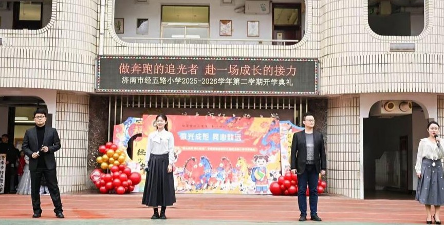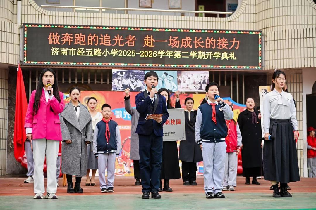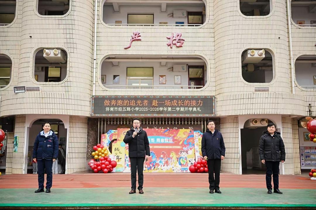 春意萌动,万物竞发。3月4日上午,济南市经五路小学以“微光成炬,同心致远”为主题举行新学期开学典礼。济南市教育局组成员、副局长宋豫,市中区人民政府副区长王菊,济南市教育局民继处副处长、二级调研员左爱军,济南市教育局民继处副处长臧绍宇,市中区教体局组、局长宫春,市中区教育教学研究中心主任明亮等出席活动,与全校师生及家长代表共同迎接新学期的到来。